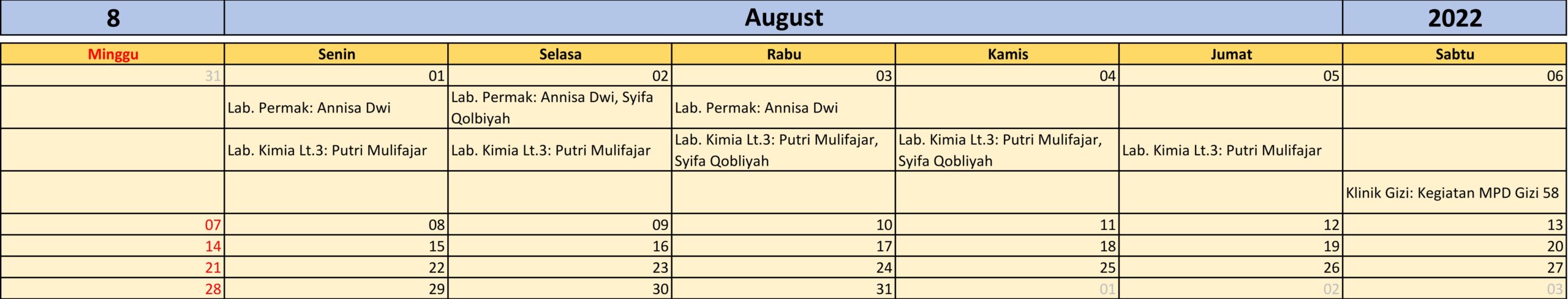 Kalender 01-06 Agustus 2022